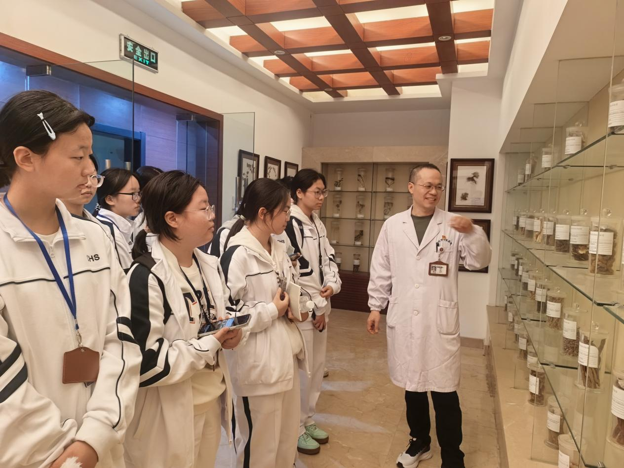 走进中药标本馆,整齐陈列的药材标本令人叹为观止。每一味药材都规范标注着学名、药用部位和功效,同学们一边辨认药材,一边思考着“槟榔既是中药又需慎用”等专业问题。透过玻璃展柜,他们仿佛触摸到了中医药文化的深厚底蕴。